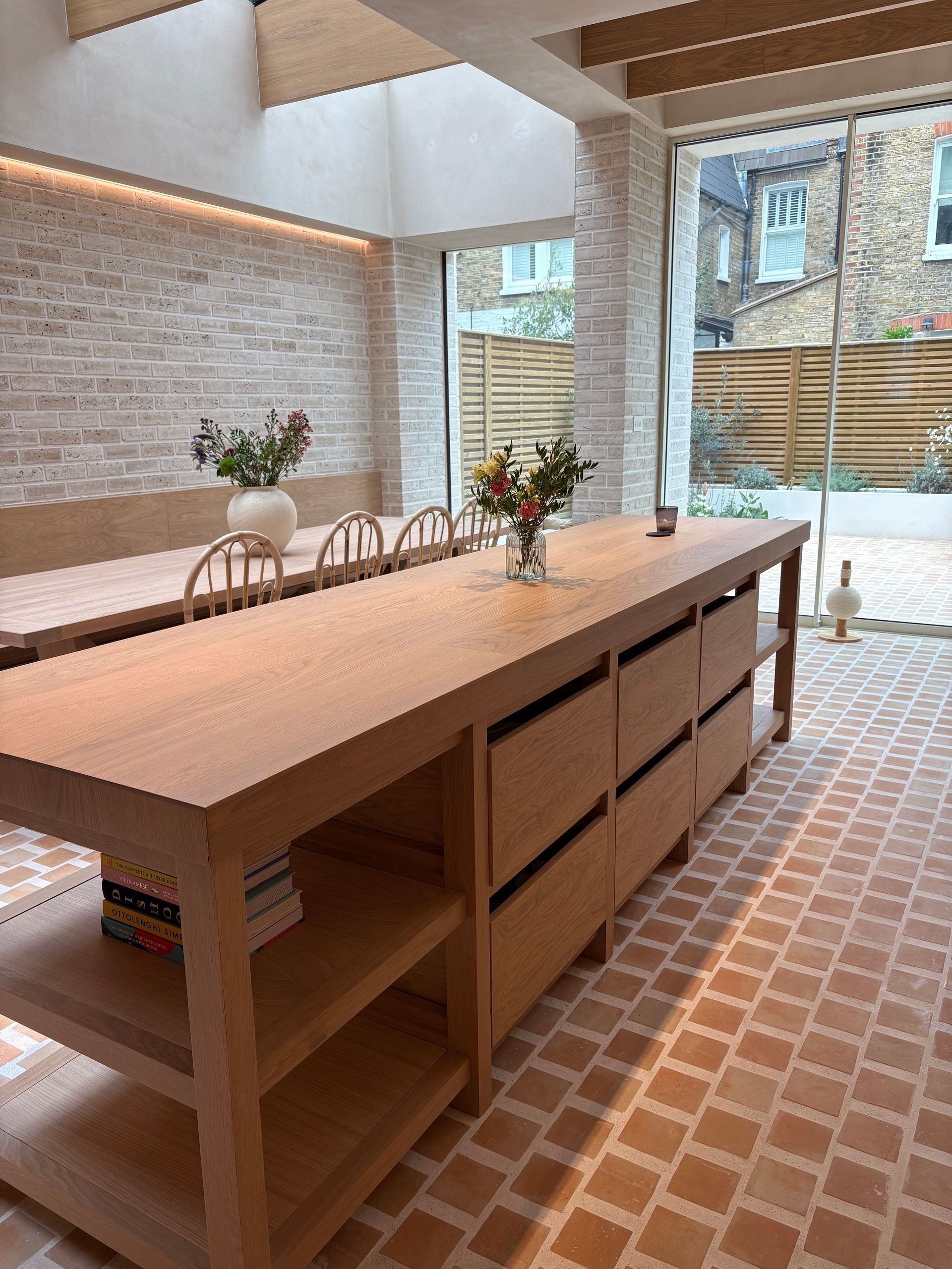 Archi.tile supplied 60m² of our Terrcacotta effect porcelain floor tile to this beautiful London home, Our Terra Picolo Sand 110x110 porcelain tiles for this project have been used throught the kitchen floor and into the patio floor area to give a seamless version of terracotta flooring that is suitable for indoor and outdoor application . The design captures the timeless warmth of terracotta while offering all the practical benefits of porcelain. Unlike traditional terracotta, these tiles require no specialist cleaning or ongoing maintenance, making them a hassle-free choice for everyday living. Thanks to their frost-proof and slip-resistant properties, the same material can seamlessly transition from indoor to outdoor spaces—creating a continuous, harmonious flow. This makes Terra Picolo Sand an ideal solution for bringing your dream design to life, without the challenges of natural terracotta.