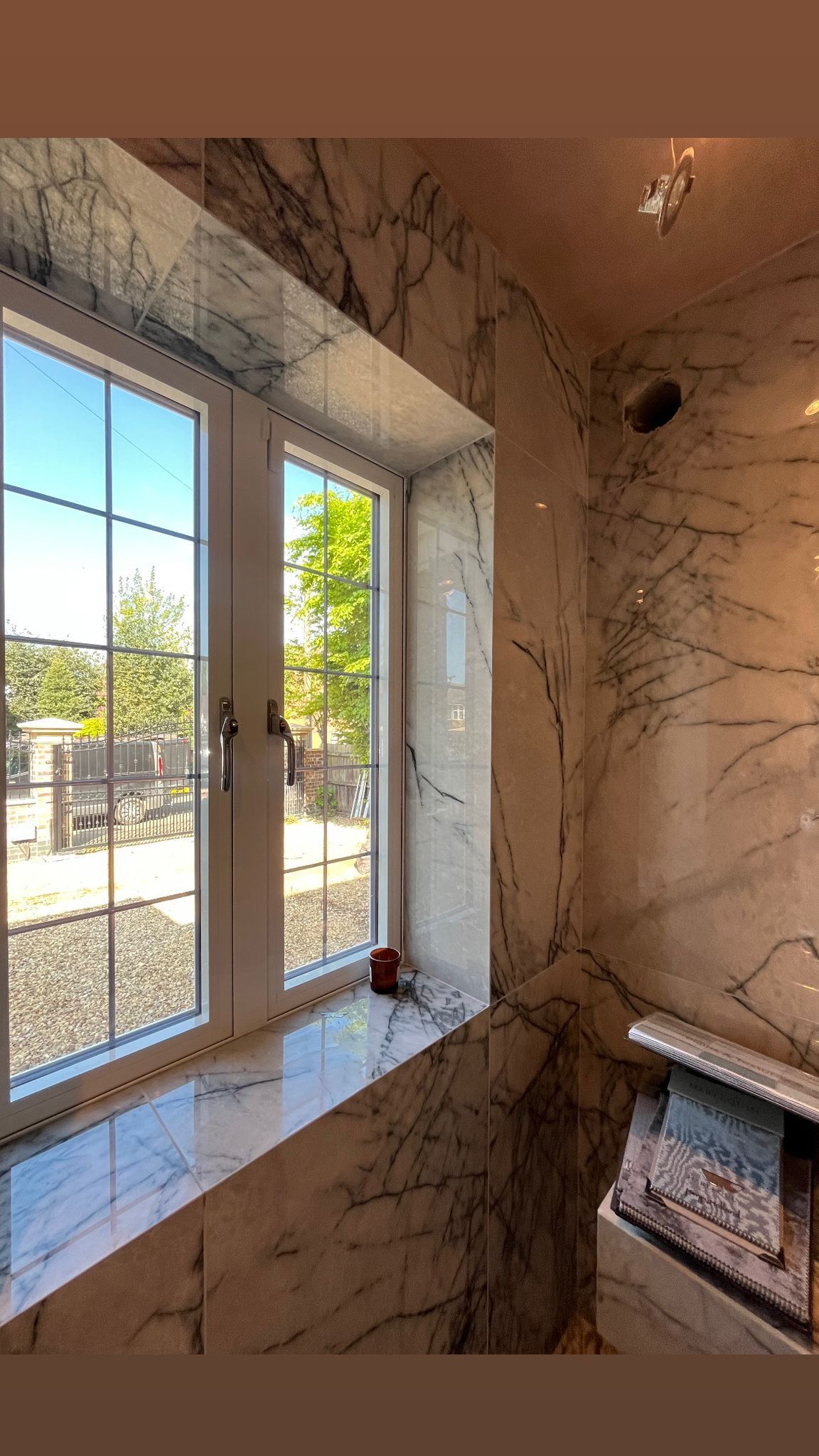 Archi.tile suministró nuestros azulejos de porcelana pulida Bukcingham Nero de 600x1200 para este impresionante baño ubicado en Headlands, Kettering. ¿Puedes decir que no es mármol auténtico?