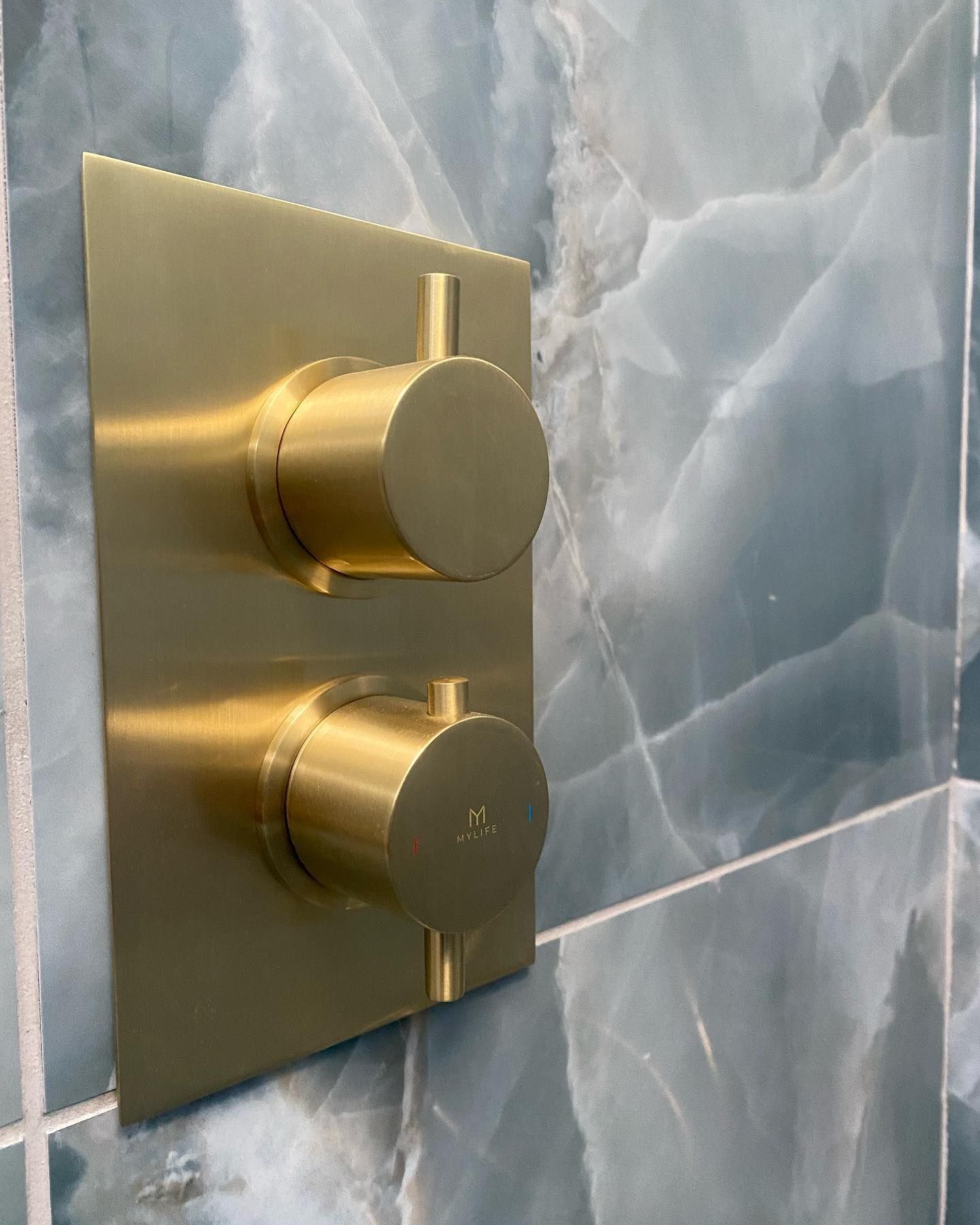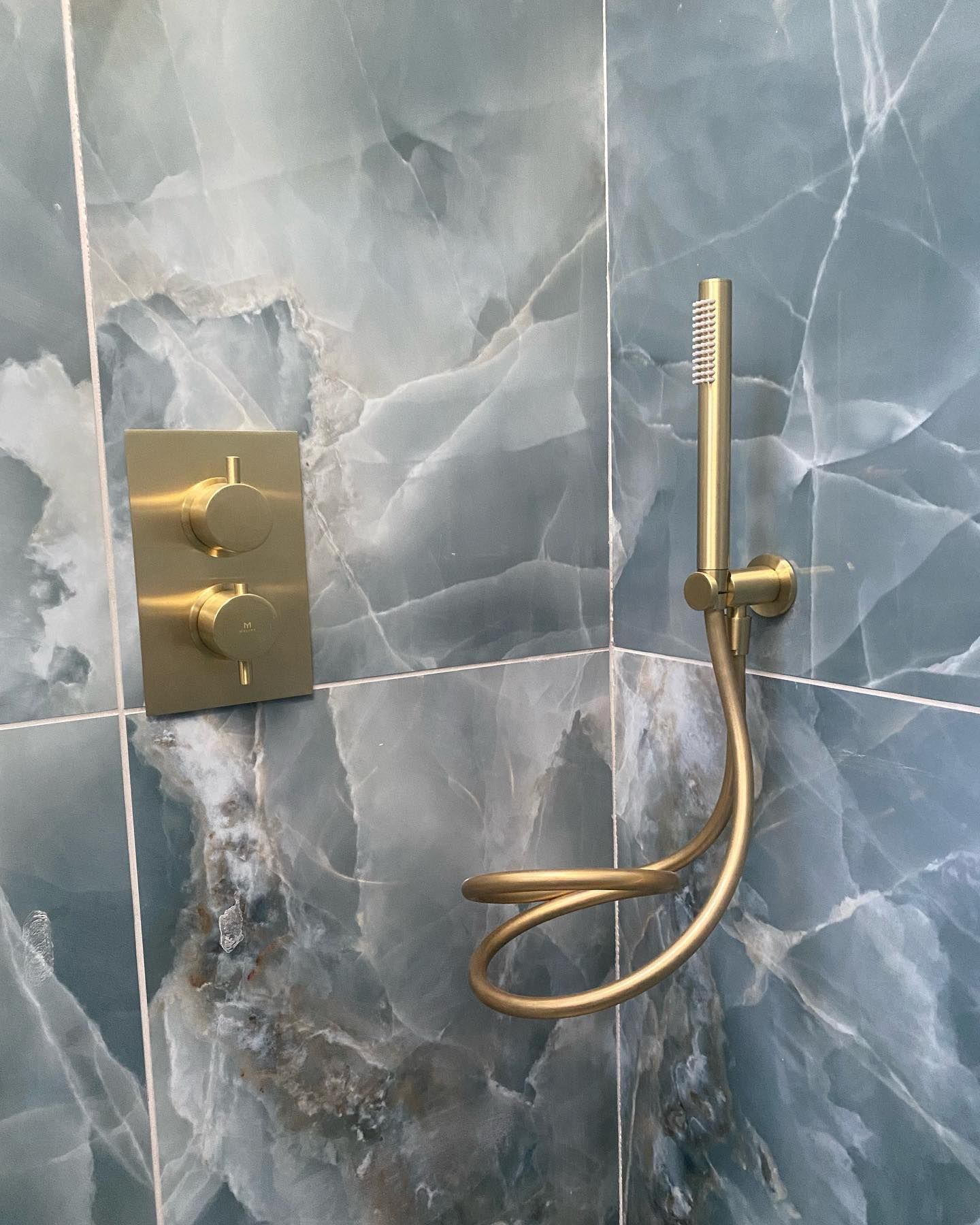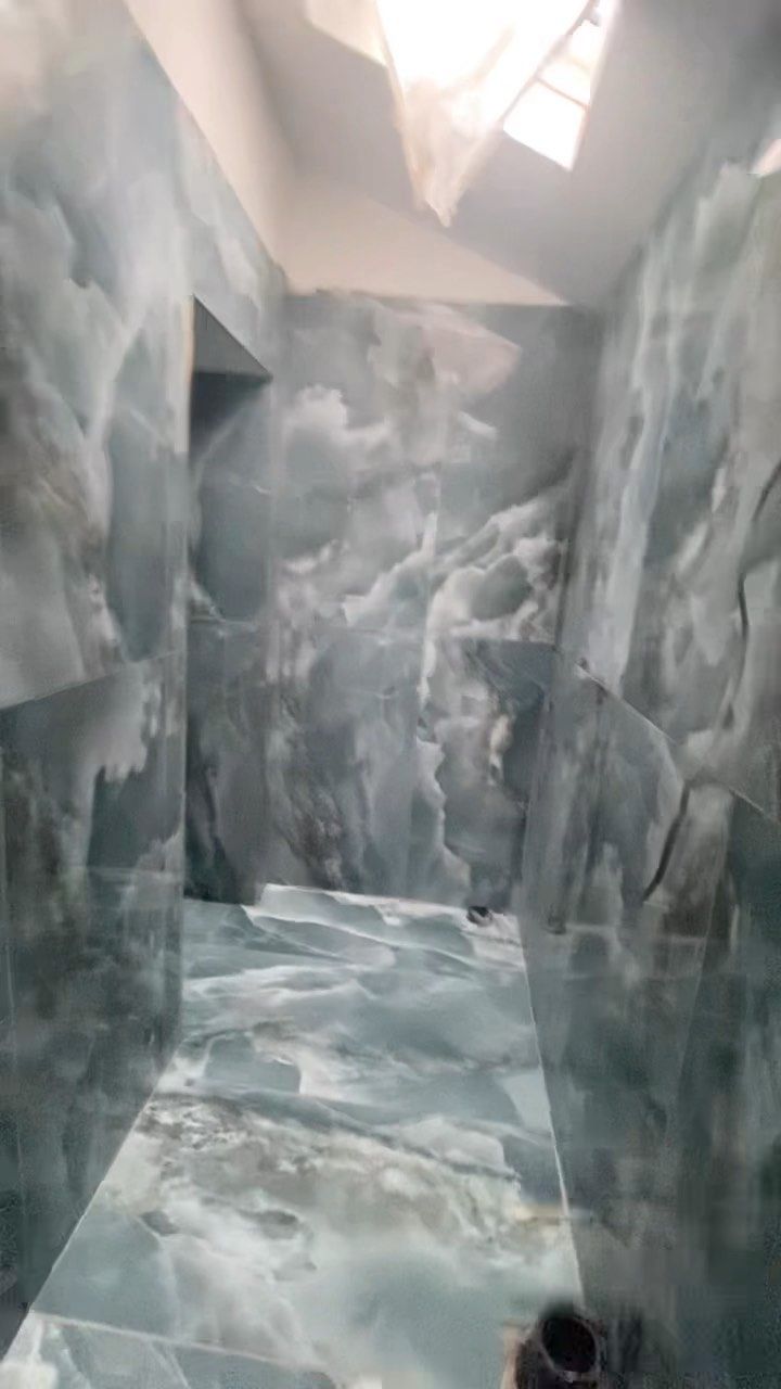 Archi.tile nos suministró los azulejos Sapphire en Verde Gloss 600x1200, Cuarzo Marquina 1200x1200 Gloss y Cuarzo Gold Polished. 600x1200 con suelo de ducha a juego con acabado mate.