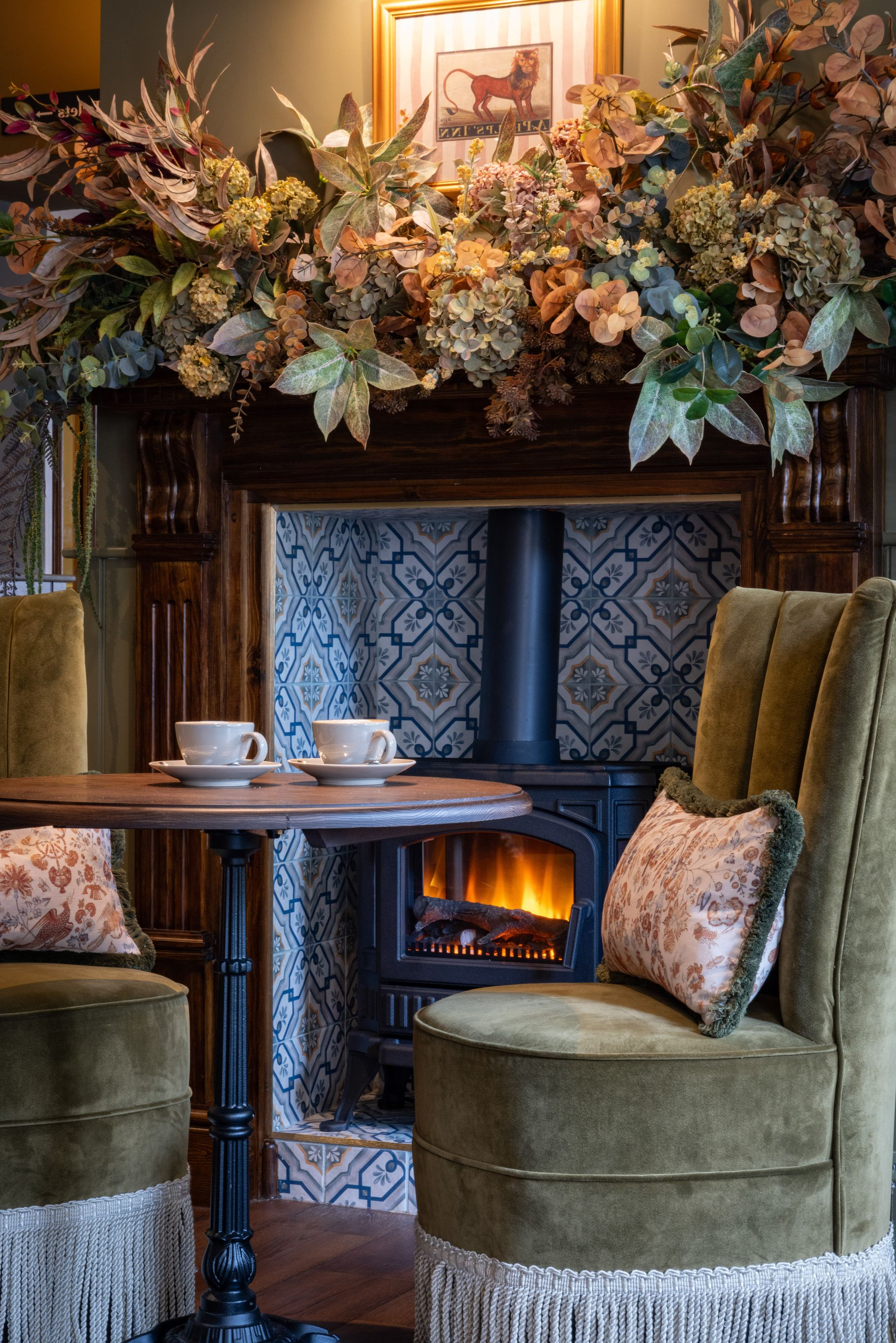 Esta renovación realza el ambiente cálido y social del pub, a la vez que incorpora detalles de diseño contemporáneo que mejoran la experiencia del cliente. Una nueva barra de madera oscura preside el espacio, combinada con coloridos taburetes, asientos de cuero color turquesa y una suave iluminación ámbar que crea un ambiente acogedor y hogareño. La renovada zona de dardos y la moderna mesa de billar potencian el ambiente social, asegurando que The Red Lion siga siendo un lugar de referencia tanto para los lugareños como para los visitantes.